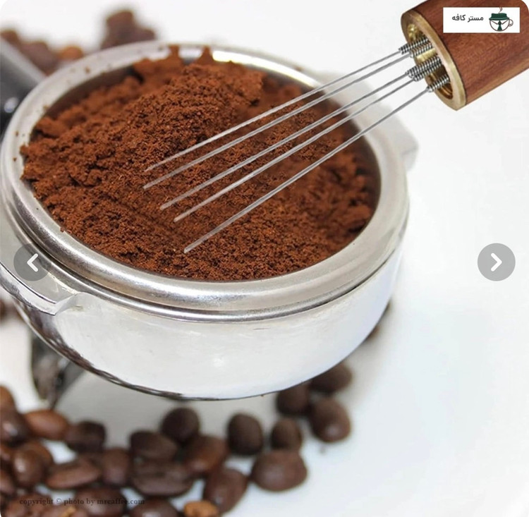 بعد از آسیاب کردن قهوه در پورتا فیلتر با نیدل سوزنی